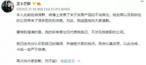 虽然他可以选择不使用鸿蒙系统,但不应该恶意诋毁它,因为它代表了中国人对摆脱美国霸权主义的希望。虽然他后来澄清自己只代表个人观点,但作为公关经理,他的恶意言论无疑会给OPPO公司带来负面影响。即使他解释说他不代表公司立场,但大家不会原谅他,他的恶意言论将一直被人们记住。