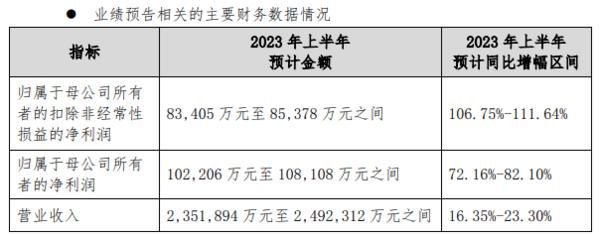 7月14日,海信视像发布2023年H1业绩预告,海信视像预计营业收入为235.19亿至249.23亿元,归属于上市公司股东的净利润为10.22亿-10.81亿,净利润同比增长72.16%至82.10%。