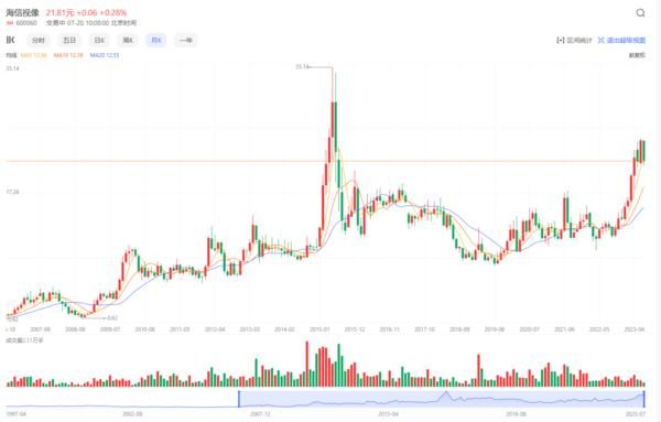 海信股价增长的逻辑其实不难理解,对于大多数成长股来说,它们都需要给投资人一个明朗的未来,股价涨幅程度越大,越需要一个高速增长的预期来给这个尚未到来的明天提供多一点支撑。但海信与之不同,不到一年时间,海信视像股价涨幅达到了100%,与其说是逆势上扬业绩拉动了股价上涨,不如说是海信描绘的未来在投资人的视野里越来越清晰。