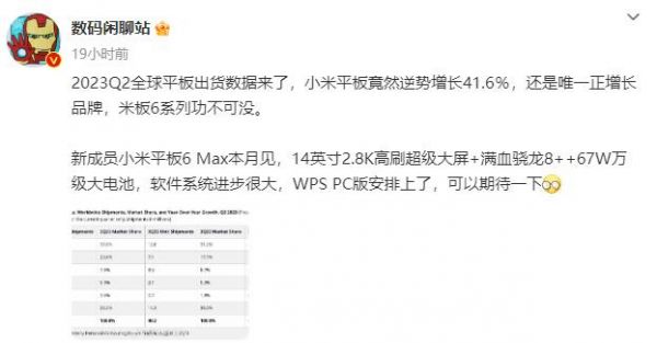 小米平板出货逆势增长,小米平板6 Max发布在即