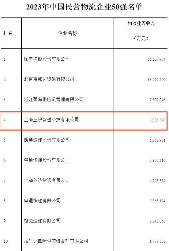 日前,中国物流与采购联合会正式发布《关于发布 2023 年度中国物流企业 50 强、民营物流企业 50 强的通告》(以下简称《通告》)。