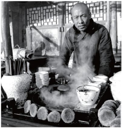 旧时,北京城的庙会和街头巷间常常有卖小吃的摊贩。南来北往的人,若是逛庙会累了,就在小吃摊上歇歇脚,随兴买点小吃品尝。因此,小吃也被老北京叫作“碰头食儿”或“小食”,碰到就尝点,有“随兴”之意,以区别于日常的正餐。