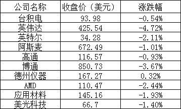 美股中的主要芯片股表现如下: