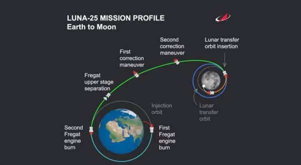 图注:月球25号探测器奔月轨道示意图。