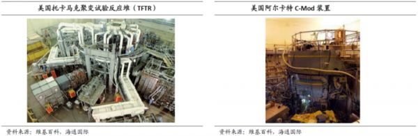 图说:美国托卡马克聚变试验反应堆(TFTR)和阿尔卡特 C-Mod 装置,来源:维基百科、海通国际