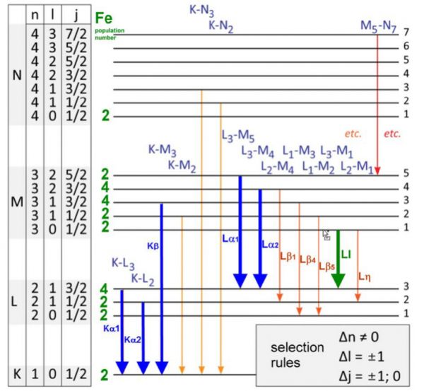 铁原子中有很多能级,也有不同的电子跃迁选择规则。尽管许多量子系统可以通过控制以实现高效的能量传递,但在生物系统中还没有以同样方式运作的例子。图源:Daniel Carlos Leite Dias Andrade et al., Conference: 25º CSBMM – Congresso da Sociedade Brasileira de Microscopia e Microanálise, 2015
