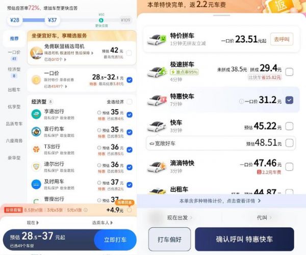此外,网约车平台数量多了不少,暂且不谈滴滴、曹操出行、T3出行等知名度比较高的网约车平台,其他平台也只能通过“一口价”“特惠价”等促销方式来提高知名度。