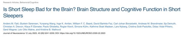近日,来自欧洲的多个研究团队一同在Journal of Neuroscience发表题为“Is Short Sleep Bad for the Brain? Brain Structure and Cognitive Function in Short Sleepers”的研究,结果表明:与睡眠时长相比,特定脑区的体积与白天嗜睡和睡眠障碍的相关性更强。睡眠时间短的人,在一般认知功能测试(GCA)上的得分仅仅略低。至于睡眠时间短是否会导致认知能力下降,不能仅通过GCA得分确定,还有必要在现实环境中进一步验证。