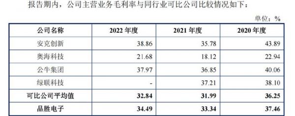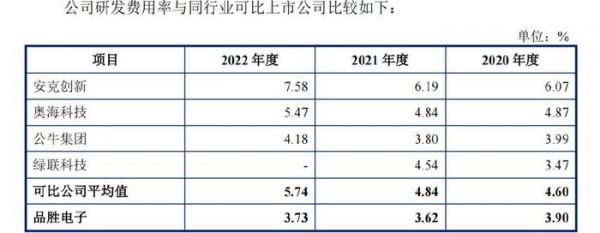 产出少的原因之一是研发投入较少,报告期内品胜电子研发费用分别为4451.57万元、4803.63万元、4957.27万元,研发费用率分别为3.90%、3.62%、3.73%,低于可比公司平均值。