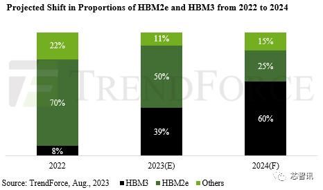 集邦咨询:预期HBM3与HBM3e将成2024年HBM市场主流 两大韩厂预计明年Q1送样HBM3e
