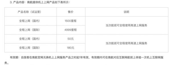 例如南方航空,可以使用飞行里程兑换,也可以直接购买,国内全程上网的价格是50元,购买后一年有效期内可以在南航任意互联网航班上使用一次,值得注意的是,国际航班的Wi-Fi价格是180元,比国内航班贵3倍多。
