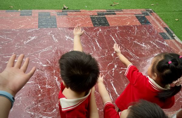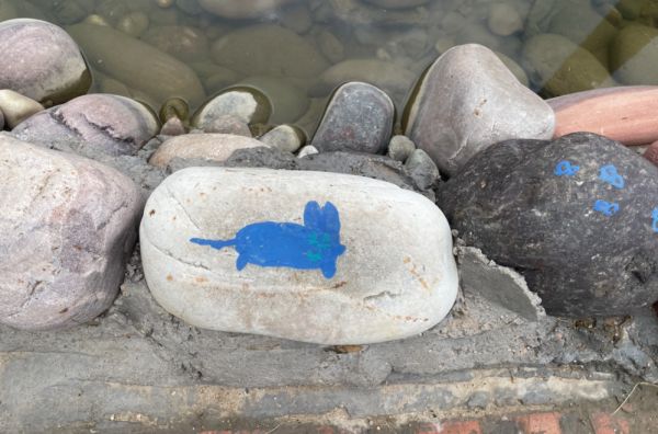 奇色花幼儿园五感公园路边的石头,画满了小朋友们的涂鸦。