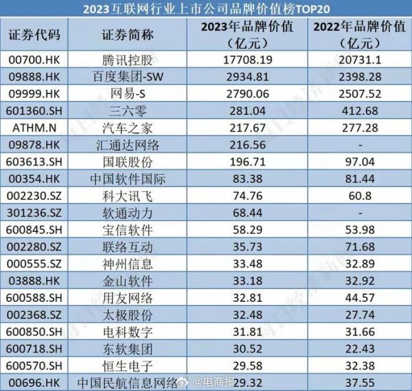 腾讯1.77万亿元蝉联榜首,百度反超网易位列第二……