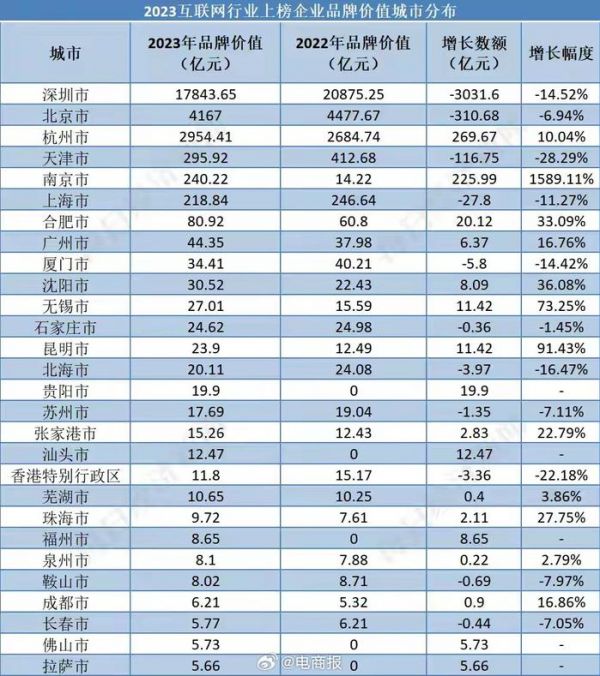 #2023互联网行业上市公司品牌价值榜# 腾讯1.77万亿元蝉联榜首,百度反超网易位列第二,北京46家企业上榜数量第一!(图源:每日经济新闻)