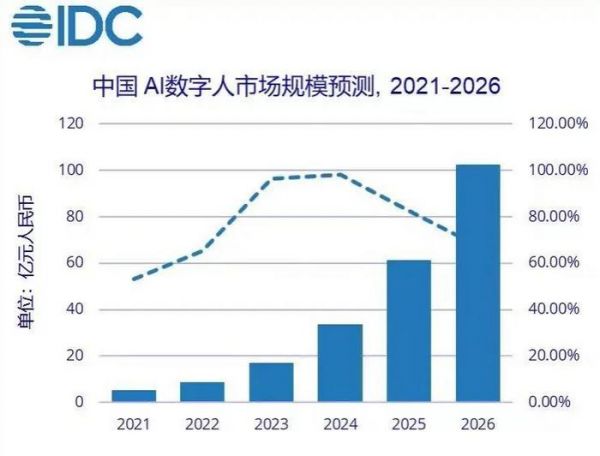 《中国AI数字人市场现状与机会分析》报告显示,我国AI数字人市场规模呈现高速增长趋势,预计到2026年将达到102.4亿元。
