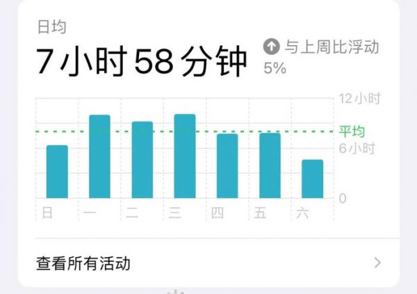 查看近一周手机使用时长,日均将近8个小时,你每天大概玩手机多久?(设置-屏幕使用时间 即可查看)