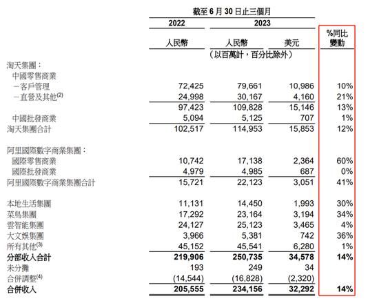 首先要说明的是,随着阿里组织架构变为 1+6+N,阿里的财报披露口径相应也有了变化,分为淘天集团,国际集团,本地生活,菜鸟,云智能,大文娱和其他。