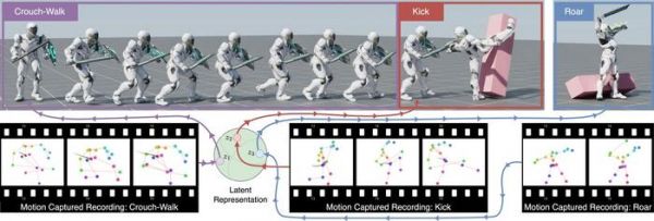 CALM AI 模型在训练之后,可以模拟 50 亿个人体动作,涵盖行走、站立、坐姿、跑步、用剑战斗等人类动作。