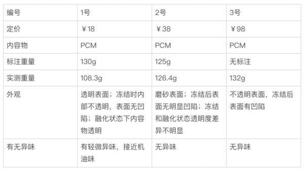 从实验数据可以看出,三款产品填充材料降温效果基本一致,但凝固点和传热能力有差异。