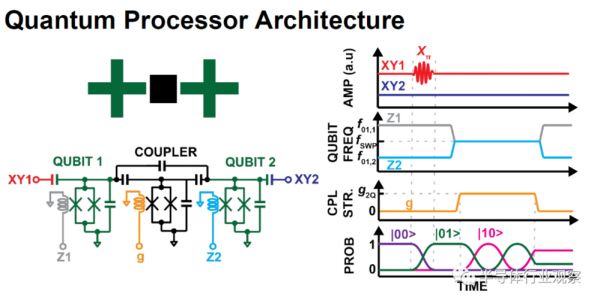 如前所述,量子位可以由超导LC谐振电路实现,而对于量子位的控制则可以通过给超导LC电路注入不同的激励信号来实现。具体来说,需要给量子位的LC谐振电路注入交流信号(XY)和直流信号(Z)。交流信号通常是一个经过调制的脉冲,而直流信号则需要能完成精确控制幅度。这样的量子位控制经由基于半导体的ASIC芯片来实现。