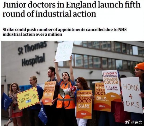 这已经是近9个月以来英国初级医生举行的第5次罢工。到目前为止,共造成77.8万个医院的预约服务被取消。