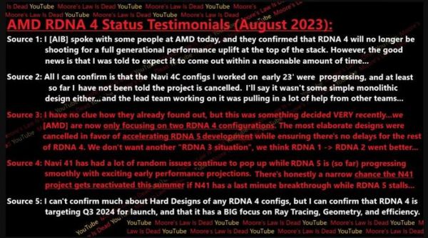 IT之家 8 月 15 日消息,根据 Moore’s Law Is Dead 最新 YouTube 一期视频,AMD 缩减即将推出的 RDNA4 阵容,将更多的精力转向 RDNA5。
