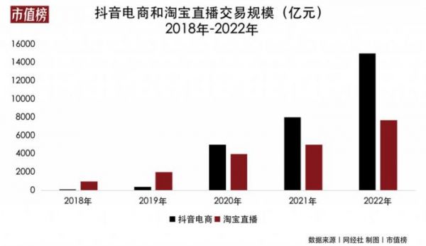 网经社数据显示,2022 年抖音的 GMV 高达 1.5 万亿,从 2018 年到 2022 年,复合增速为 250%,和京东淘天形成强烈对比。