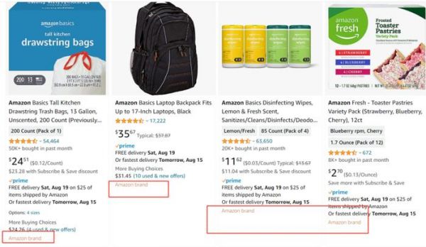 图/亚马逊平台上大量的自营品牌——Amazon brand