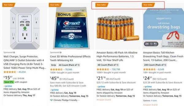 图/Amazon Basic的产品链接第三方根据数据证明,在今年7月的Prime Day中,畅销榜Top5产品有3种均为亚马逊自有品牌。