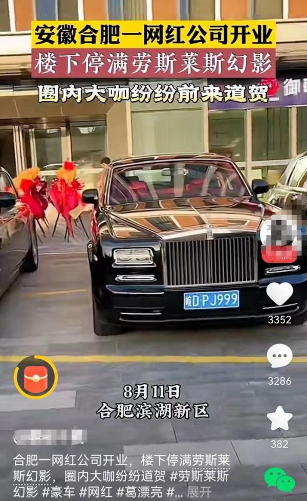 安徽一网红公司开业楼下停满劳斯莱斯幻影,圈内大咖纷纷前来道贺