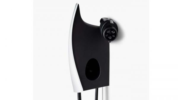 这是因为通用壁挂连接器使用了一个交流版本的超级充电器魔术底座(Supercharger Magic Dock),可以让充电器在用户需要时释放一个内置的 J1772 适配器,这样就可以为使用新的北美充电标准(NACS)或者 J1772 接口的电动车充电。