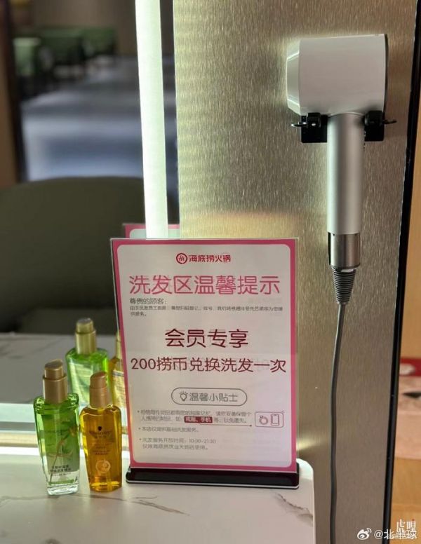 【海底捞可以洗头发了?门店回应:需会员200捞币兑换一次】#海底捞可以洗头发了#