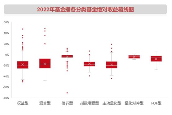 上图是各类基金内部表现的差异,权益型和混合型是两类典型的主动型股票基金,收益最大差距都达到近100个点,就算是中位数与排名前面第25%的基金,收益也相差了8~10个点。