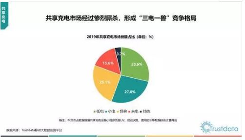 不过,据Trustdata大数据发布的《2019年中国共享充电行业发展分析简报》,共享充电宝行业经过惨烈的厮杀,已形成“三电一兽”的竞争格局。除了街电、小电、怪兽充电以及来电外,其余品牌共同占有不足4%的市场份额。