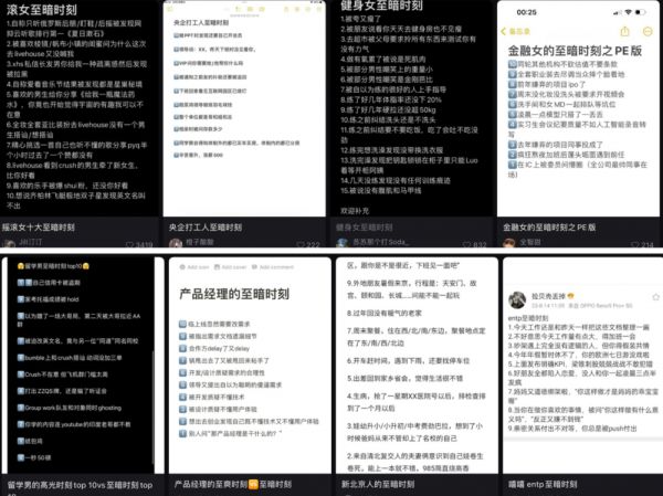 一张便利贴、十个局内人秒懂的灰暗瞬间,子弹扫射一般击中了围观的网友们。由此,“XX人的至暗时刻”便逐步突破了行业的界限,逐步扩展到地域、身份、爱好群体等范围。