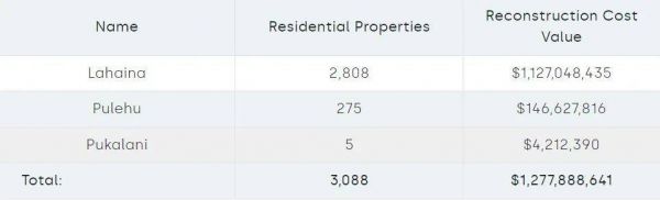 旅游业受损之外,灾后重建也将耗费大量资金。根据评估财产数据的研究公司CoreLogic的初步估计,毁灭性的毛伊岛野火范围内至少有3088处住宅受损,重建成本总计将高达13亿美元。