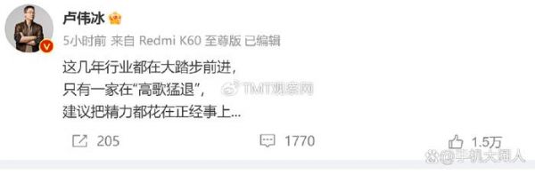 小米一加互相吐槽对比结果很热闹,毕竟看热闹不嫌事大,结果小米集团合伙人、总裁,国际部总裁,Redmi品牌总经理卢伟冰又发话了,卢伟冰表示: