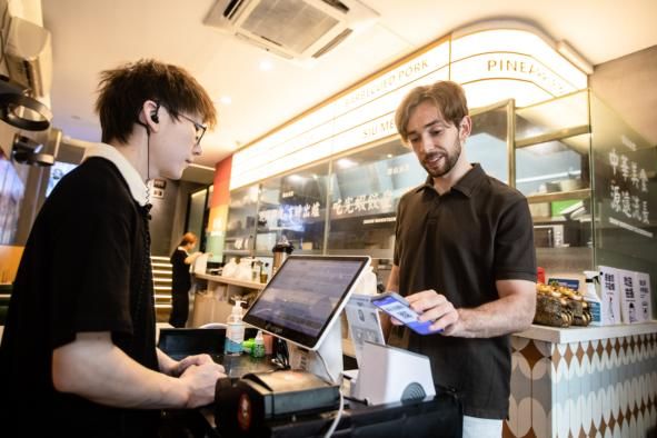图为:外国友人在华使用支付宝据介绍,支付宝国际版还将继续优化产品和服务,并鼓励支付宝平台上更多的小程序商家向境外用户提供服务支持,共同为全球游客来中国旅居创造更好的体验。