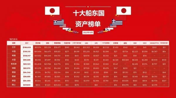 目前,日本拥有的船队资产总价值为1966亿美元,中国的船队资产总价值为1901亿美元。