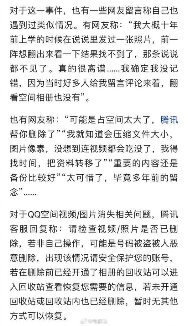 #腾讯客服回应QQ空间视频消失# QQ空间存10年的视频突然消失,腾讯客服:可能是号码被盗被人恶意删除了。你QQ空间里的照片视频有出现这种情况吗?#婚礼视频存QQ空间10年突然消失#