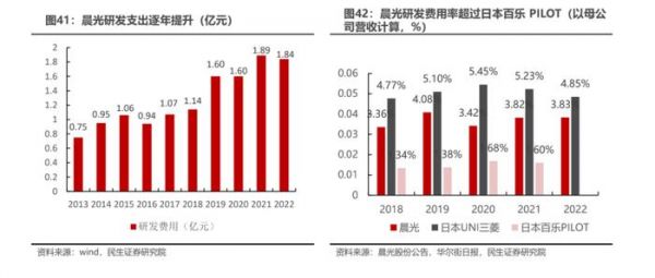 奋起直追需要时间成本,但越来越多的消费者投入日货的怀抱,长江证券研报显示,2011年至2020年,百乐在中国的市占率从1.1%达到了2%,虽然短时间撼动不了晨光笔在中低市场的份额,但这也是晨光渴望的高端化市场。