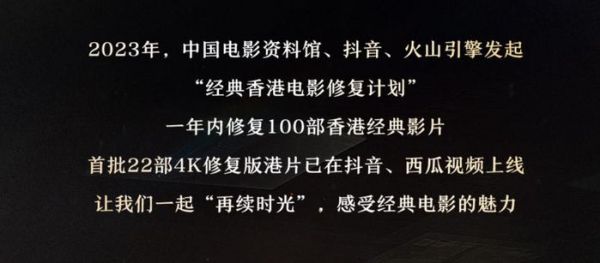 抖音集团发布了一个公告,他们将要 4K 修复 100 部香港经典影片。