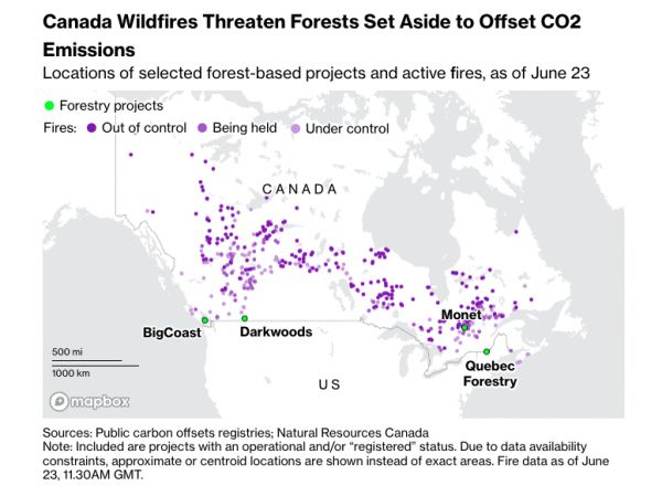 受加拿大山火影响的碳汇林项目分布 / 网页截图