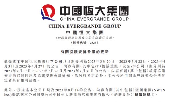 据报道,恒大在向法院提交文件中表示,正在寻求对在香港、开曼群岛和英属维尔京群岛等地进行的重组谈判的认可。恒大集团表示,债权人可能会在本月就重组进行投票,并可能在9月的第一周获得香港和英属维尔京群岛法院的批准。