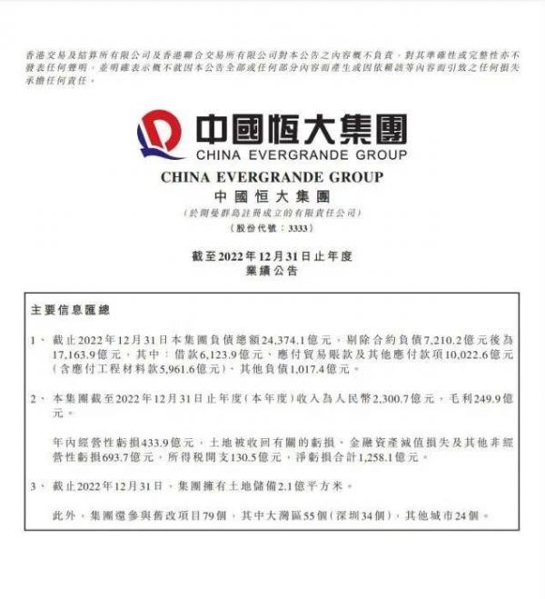 此前,在距离除牌期限仅剩不到3个月时,已停牌近16个月的中国恒大于7月17日晚间接连补发了之前所有未能按时刊发的业绩报告,包括2021年业绩、2022年半年业绩以及2022年业绩。