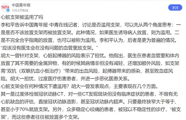 比如说,心脏支架曾经“油水”丰厚。于是前浪老医生总是满脸慈爱,对年轻医生说:“做支架手术遭到的辐射多,你们年轻,先别沾,让我干”。等到集采把心脏支架的价格打到几百块、一千块,经销商再也没有能力给回扣,支架手术的辐射突然就不存在了,老医生就突然把支架手术放手青年医生了。