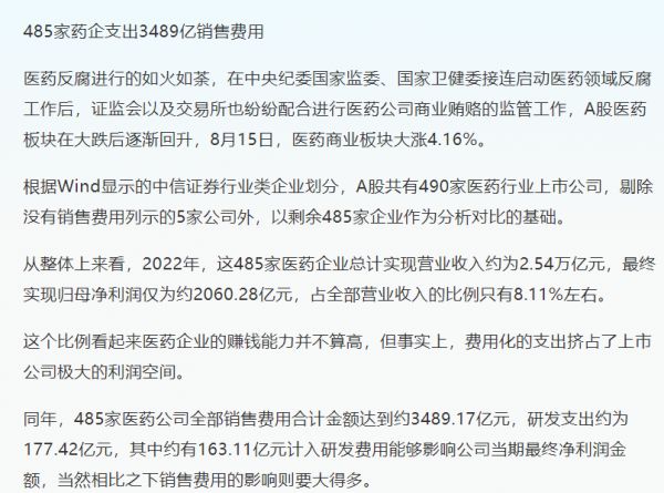 这种医药生态是不利于新药研发的,如果医疗反腐可以一定程度改变这种风气的话,那么一些用于营销的费用,是可以投入在医药和器械研发上的,显然这无论是对于产业升级的宏观叙事,还是对于普通人的健康都是好事情。