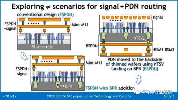 除了电力损失之外,PDN占用的空间也是一个问题。如今芯片内部的电源线路,在布线复杂的后段制程上,往往占据了至少20%的绕线资源,如何解决信号网络跟供电网络之间的资源排挤问题,使元件进一步微缩,变成芯片设计者所面临的主要挑战之一。