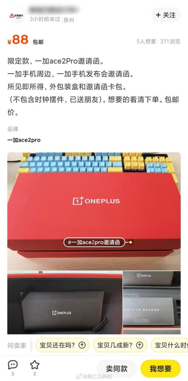 加人们谁懂啊,一加不仅手机火,发布会邀请函也火,空盒子有人还能卖88[污]