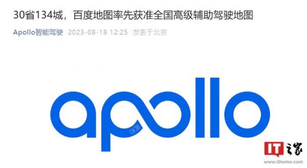 IT之家 8 月 18 日消息,百度 Apollo 智能驾驶今日宣布,百度地图 134 座城市的高级辅助驾驶地图获国家自然资源部地图技术审查中心审批,成为首批快速通过全国高级辅助驾驶地图审核的图商。